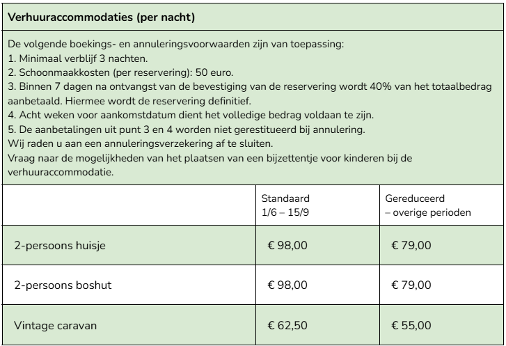 Geldig voor reserveringen in mei 2026. Van toepassing op alle verhuuraccommodaties.